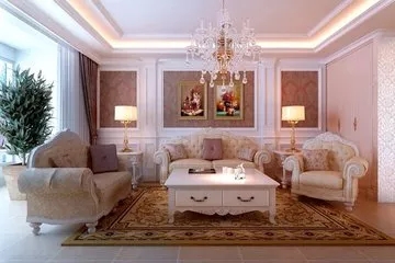 色彩:這種風(fēng)格強(qiáng)調(diào)以華麗的裝飾、濃烈的色彩、精美的造型達(dá)到雍容華貴的裝飾效果。歐式客廳頂部喜用大型燈池,并用華麗的枝形吊燈營(yíng)造氣氛。