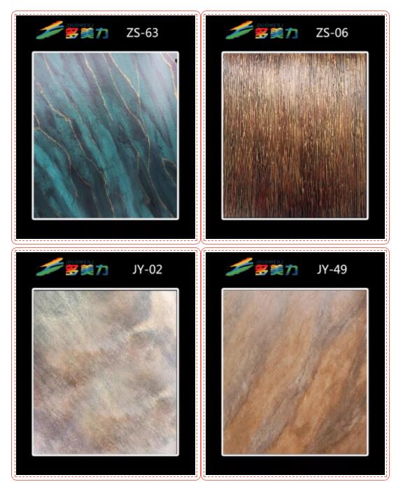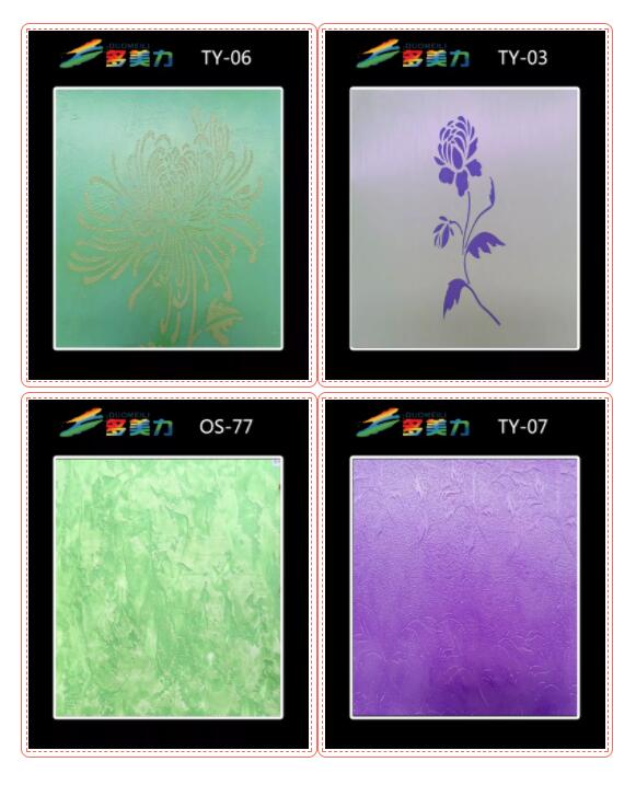 藝術(shù)涂料能做出仿巖石、仿金屬、仿樹皮以及水波、木紋等各式各樣的圖案,立體感更強,彌補乳膠漆、壁紙等傳統(tǒng)墻面裝飾材料平面、單調(diào)的缺點。消費者可以根據(jù)自己的愛好選擇不同顏色的藝術(shù)涂料。