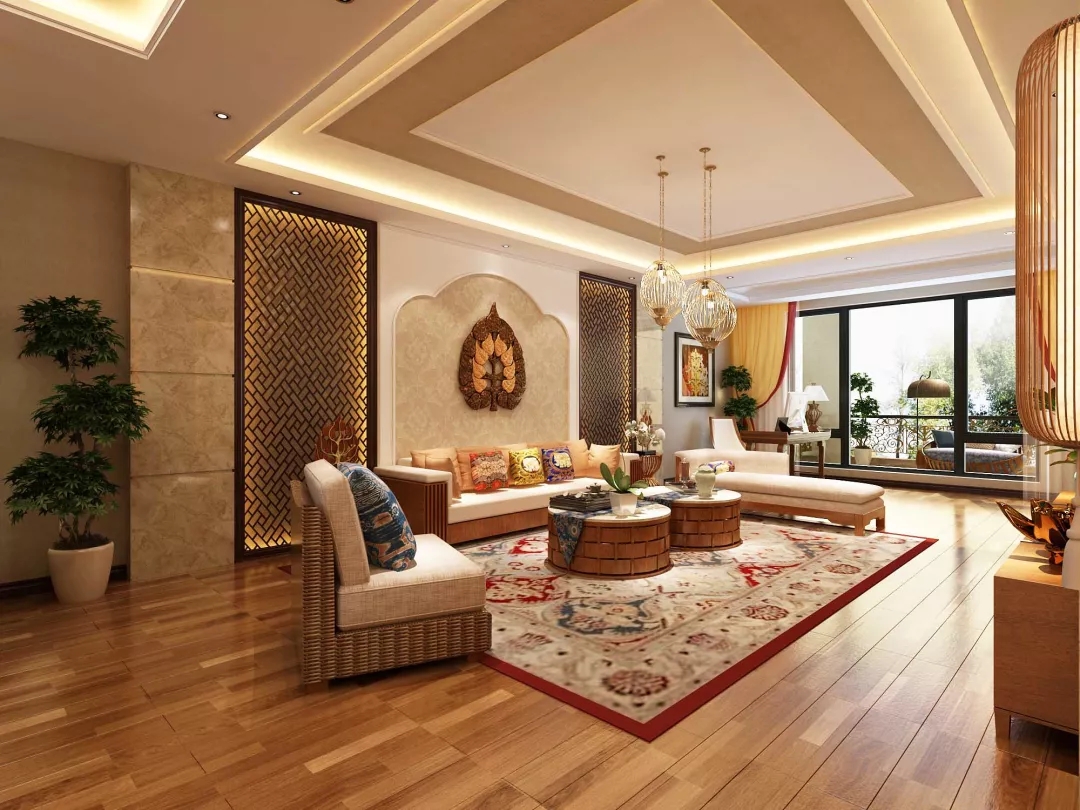 材質(zhì):多以實(shí)木為主,主要以柚木(褐色以及深褐色)為主,搭配藤制家具以及布衣裝飾(點(diǎn)綴作用)